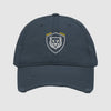 Expand your headwear collection with this fashionable dad hat. With a slightly distressed brim and crown fabric, it’ll add just the right amount of edge to your look. For a quick and easy outfit pair it with slacks, your favorite jeans, and a sports tee.